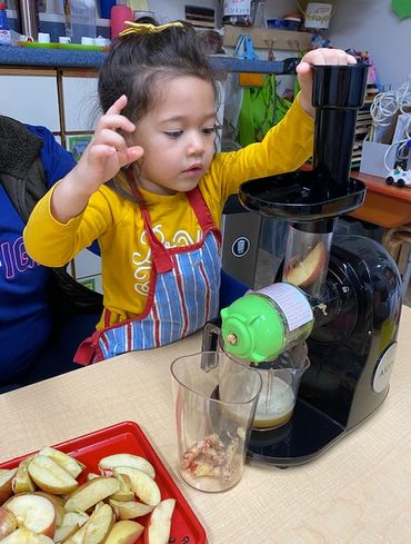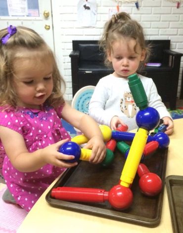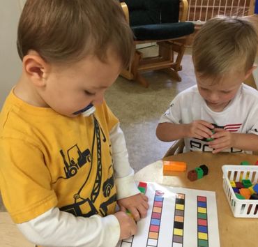 Once the child turns two, we devote a lot more time into intentional learning which allows us and the children to participate in shared thinking and problem solving to complete difficult tasks. This transition does not mean play-based learning is no longer utilized; it is now supplemented by conversations and more distinct guidelines that advance in difficulty as the child develops a more complex vocabulary. The children learn to focus by understanding the purpose of the task and sit down at a table to finish it.